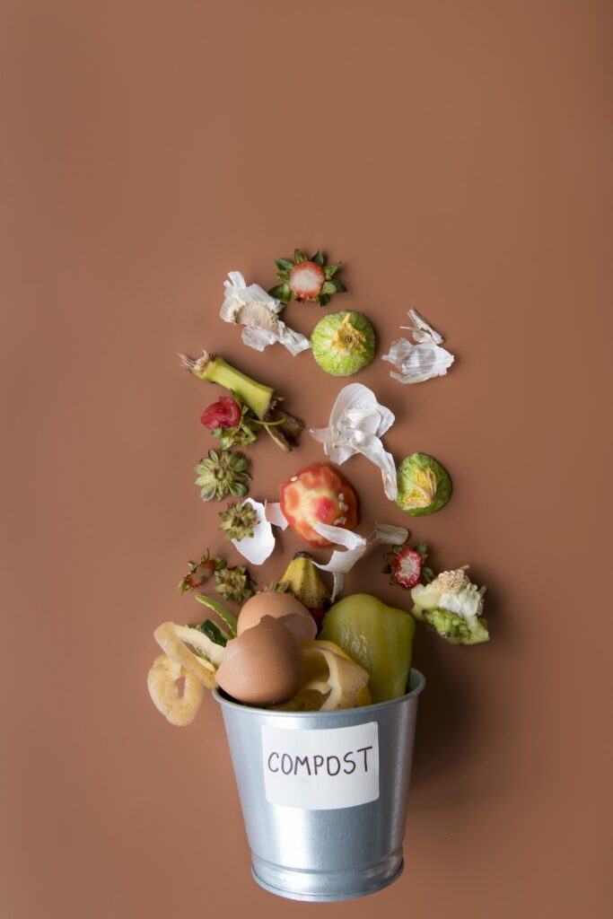 Restos de frutas, verduras, cáscaras de huevo, café, bolsitas de té y otros residuos biodegradables.